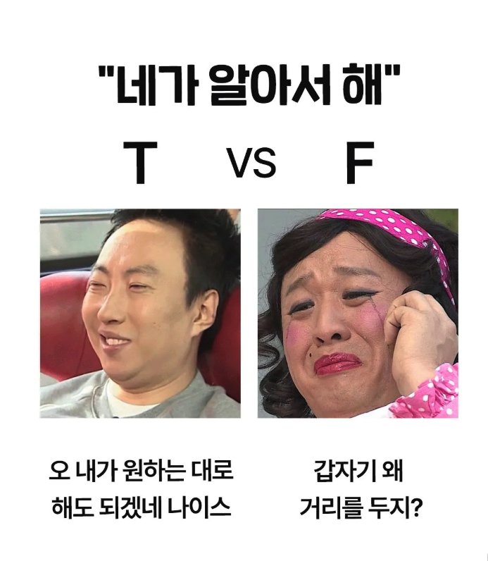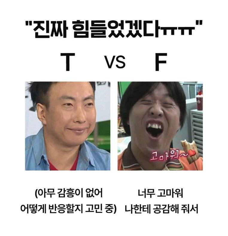 T는 상황 분석, F는 감정 분석이네요 ㅋㅋ